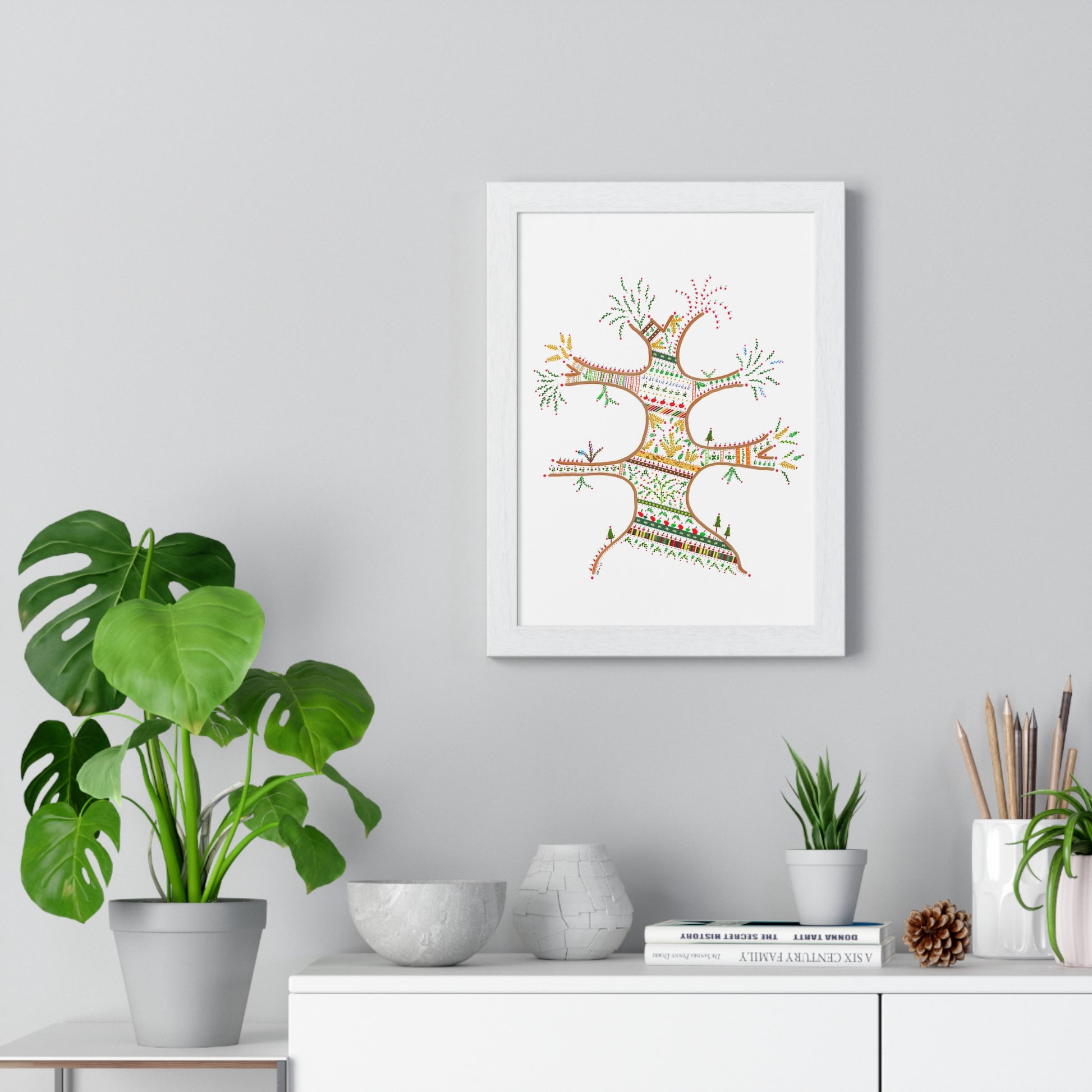 - Pre-installed hanging hardware for immediate wall display